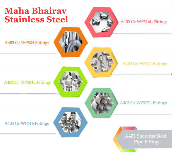 Maha Bhairav Stainless Steel is 5th Largest Manufacturer of ASTM A403 Stainless Steel Pipe Fittings in india, we are manufacturing SS High Pressure Pipe Fittings since 1999.We are ISO 9001 & 14000 certified Exporter of ASTM A403 Stainless Steel Pipe Fittings in india.We maintain over 1200 ton ASTM A403 Stainless Steel Pipe in various shape, sizes coating which makes us one of the largest stockist of ASTM A403 Stainless Steel Pipe Fittings in India.In 1985 Maha Bhairav Stainless Steel was incorporated as a trader of ASTM A403 Stainless Steel Pipe Fittings in India. in 1991 became stocking Distributor of ASTM A403 Stainless Steel Pipe Fittings.later in year 1994 Maha Bhairav Stainless Steel became well known Supplier of ASTM A403 Stainless Steel Pipe Fittings in India.Further, we started Exporting of ASTM A403 Stainless Steel Pipe Fittings and becomes 6th Largest Exporter of ASTM A403 Stainless Steel Pipe Fittings in india, China, Japan & Europe.In year 1999, Maha Bhairav Stainless Steel became largest stockholde of ASTM A403 Stainless Steel Pipe Fittings in India.Currently we are improving our traders of ASTM A403 Stainless Steel Pipe Fittings in india, wholesaler of ASTM A403 Stainless Steel Pipe Fittings in india, and importer of ASTM A403 Stainless Steel Pipe Fittings in india and also in wold wild with best Quality and an affordable price to fulfill emerging customer needs.